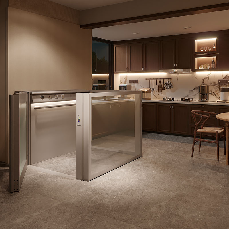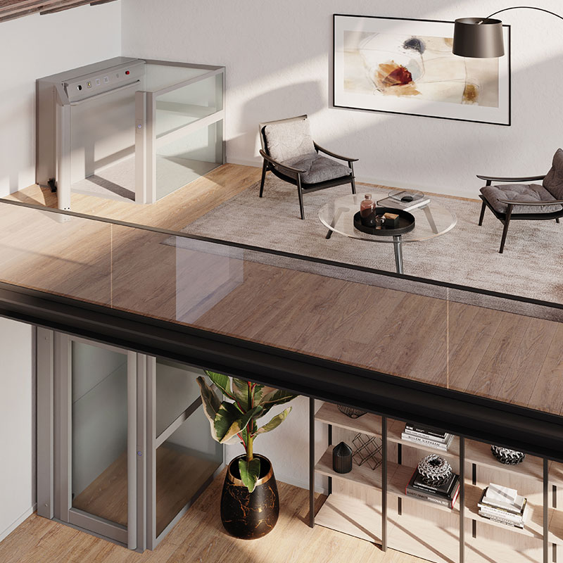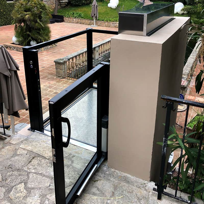 Con un accionamiento eléctrico a tornillo y una estructura autoportante de aluminio anodizado personalizable, la Domoflex OPEN ofrece un diseño moderno y adaptable. Su plataforma, de solo 5 cm de espesor, facilita el acceso mediante una pequeña rampa y se fabrica a medida para integrarse en cualquier espacio.