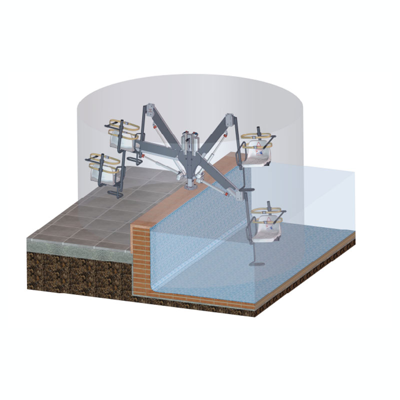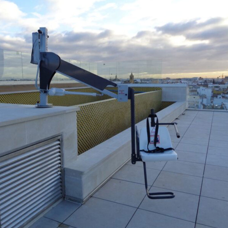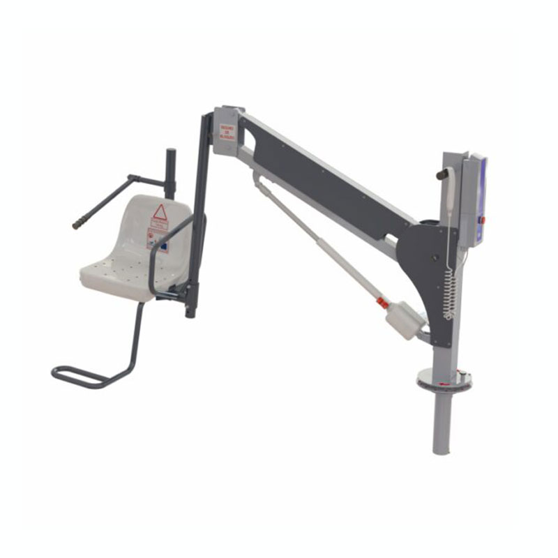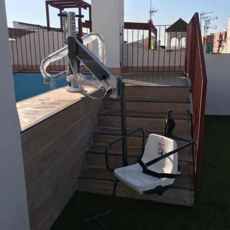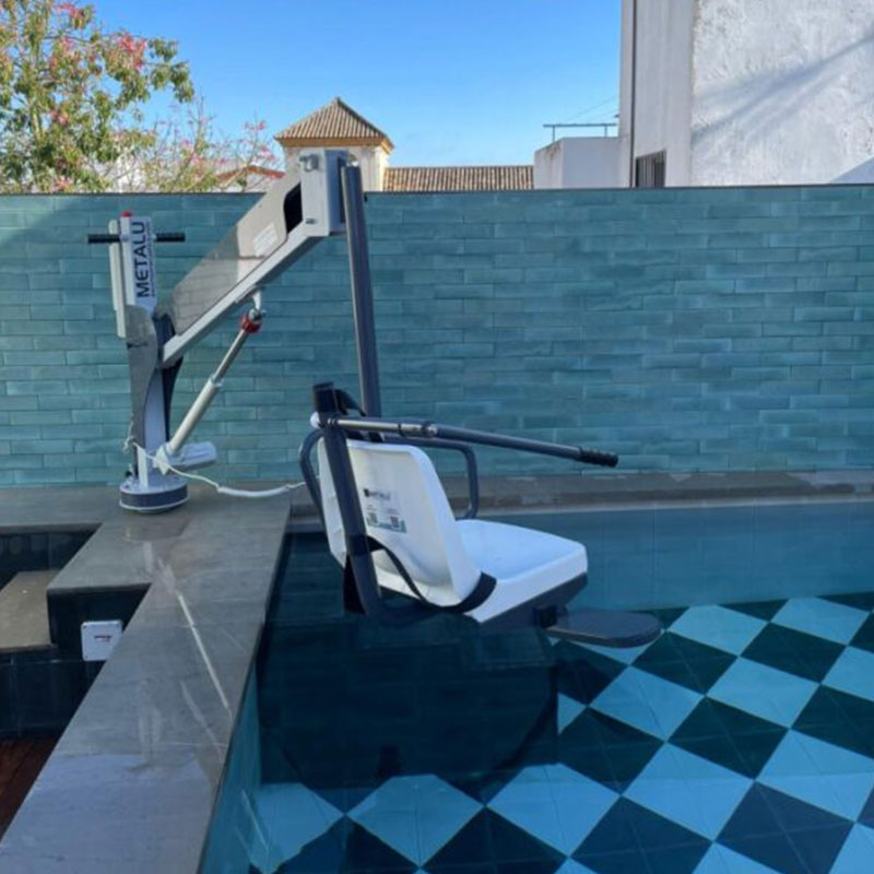 Su fabricación en acero inoxidable AISI 316 L con acabado en pintura en polvo garantiza una alta resistencia frente a la humedad, el cloro y las condiciones exteriores, lo que lo convierte en una opción ideal para un uso prolongado tanto en entornos privados como públicos. Además, su diseño personalizable permite ajustar tanto la longitud del brazo como la posición del asiento, asegurando una integración óptima en cada piscina.