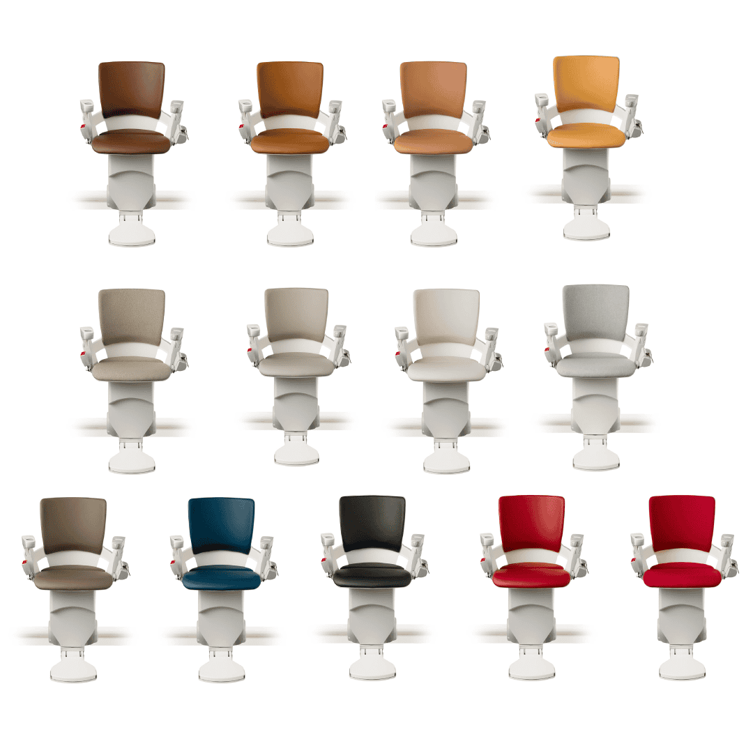 El salvaescaleras Modul-Air de Otolift se adapta perfectamente a cualquier configuración de escalera. Con reposapiés plegable y asiento giratorio automático, su avanzada tecnología permite el ascenso, total o parcialmente, de espaldas, evitando choques en escaleras estrechas. Además, el riel Modul-Air es el más delgado del mundo, asegurando que tu escalera esté siempre libre para el paso. Así se garantiza que no solo tú, sino también tu familia o invitados, puedan usar la escalera de forma segura. El asiento está disponible en una gran variedad de colores y materiales.