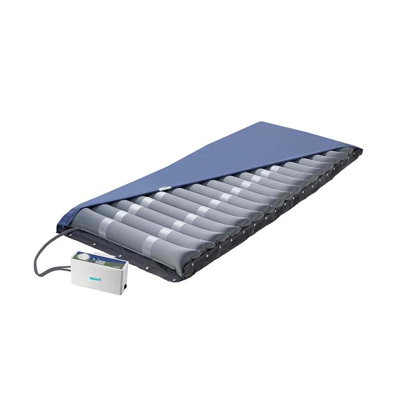 El colchón de aire antiescaras Domus 2+ está especialmente diseñado tanto para la prevención como para el tratamiento de úlceras por presión (UPP) de grado I-II, en pacientes con riesgo medio. Gracias a su sistema de presión alternante con 18 celdas de 10,2 cm de altura y un ciclo de 9,6 minutos, redistribuye la presión eficazmente y mejora el confort del usuario. El compresor incluye un regulador de presión en función del peso del paciente (40-140 kg) y una alarma visual de baja presión para mayor seguridad. Su funda de Nylon PU, resistente al agua y permeable al vapor, junto a las celdas ventiladas en la zona del sacro, favorecen la gestión del microclima, reduciendo la maceración de la piel. Ideal para entornos domiciliarios o institucionales, el Domus 2+ representa una solución terapéutica eficiente para pacientes con movilidad reducida o en reposo prolongado.