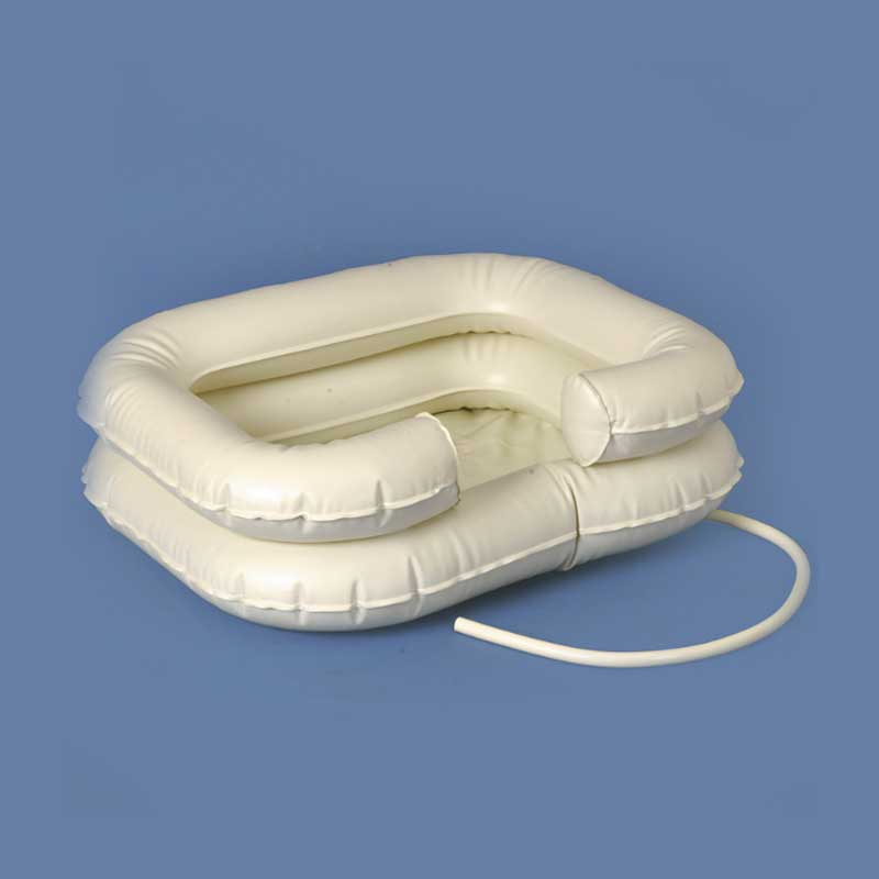 El lavacabezas hinchable de vinilo está diseñado para ofrecer una solución práctica, segura y confortable al momento de lavar el cabello a personas encamadas, dependientes o con movilidad reducida. Su estructura está formada por dos aros inflables que crean una base estable y cómoda, evitando movimientos incómodos y proporcionando apoyo al usuario durante el aseo.