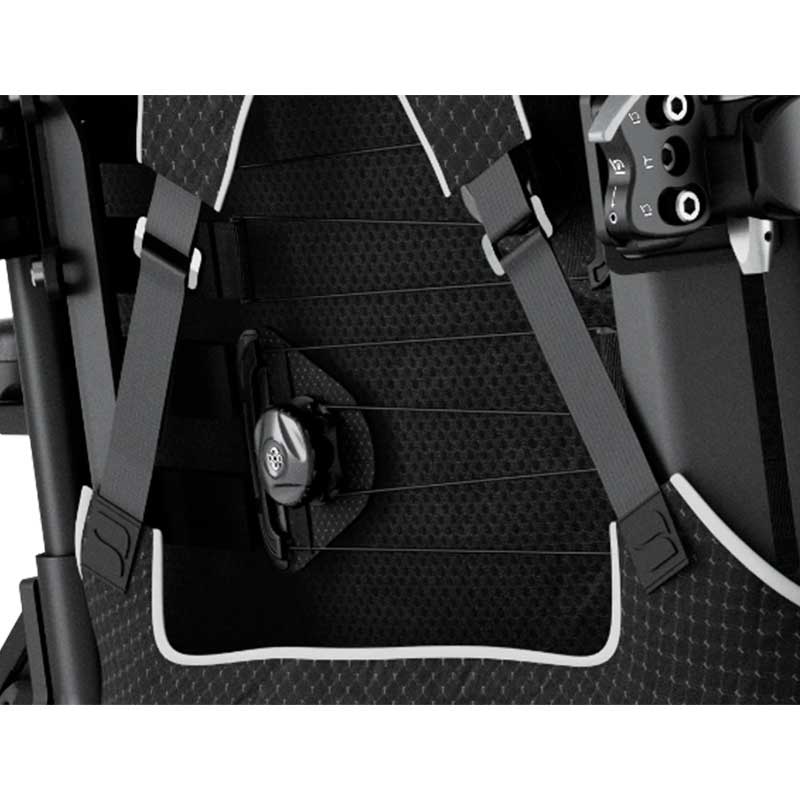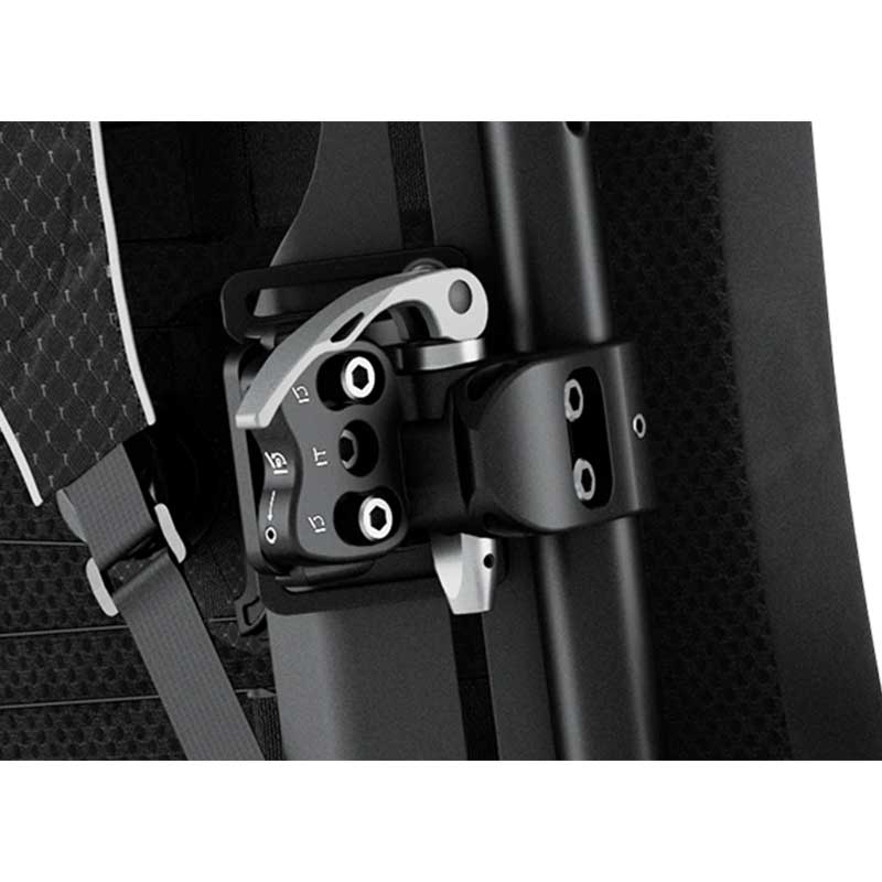 El soporte rígido Compass® 4 añade robustez y ligereza al conjunto. Gracias a su ajuste independiente en profundidad y ángulo de reclinación, el profesional puede configurar el respaldo de forma personalizada según las necesidades del usuario. Este sistema permite una configuración rápida y precisa desde la propia silla, garantizando estabilidad, confort y una postura segura durante todo el día.